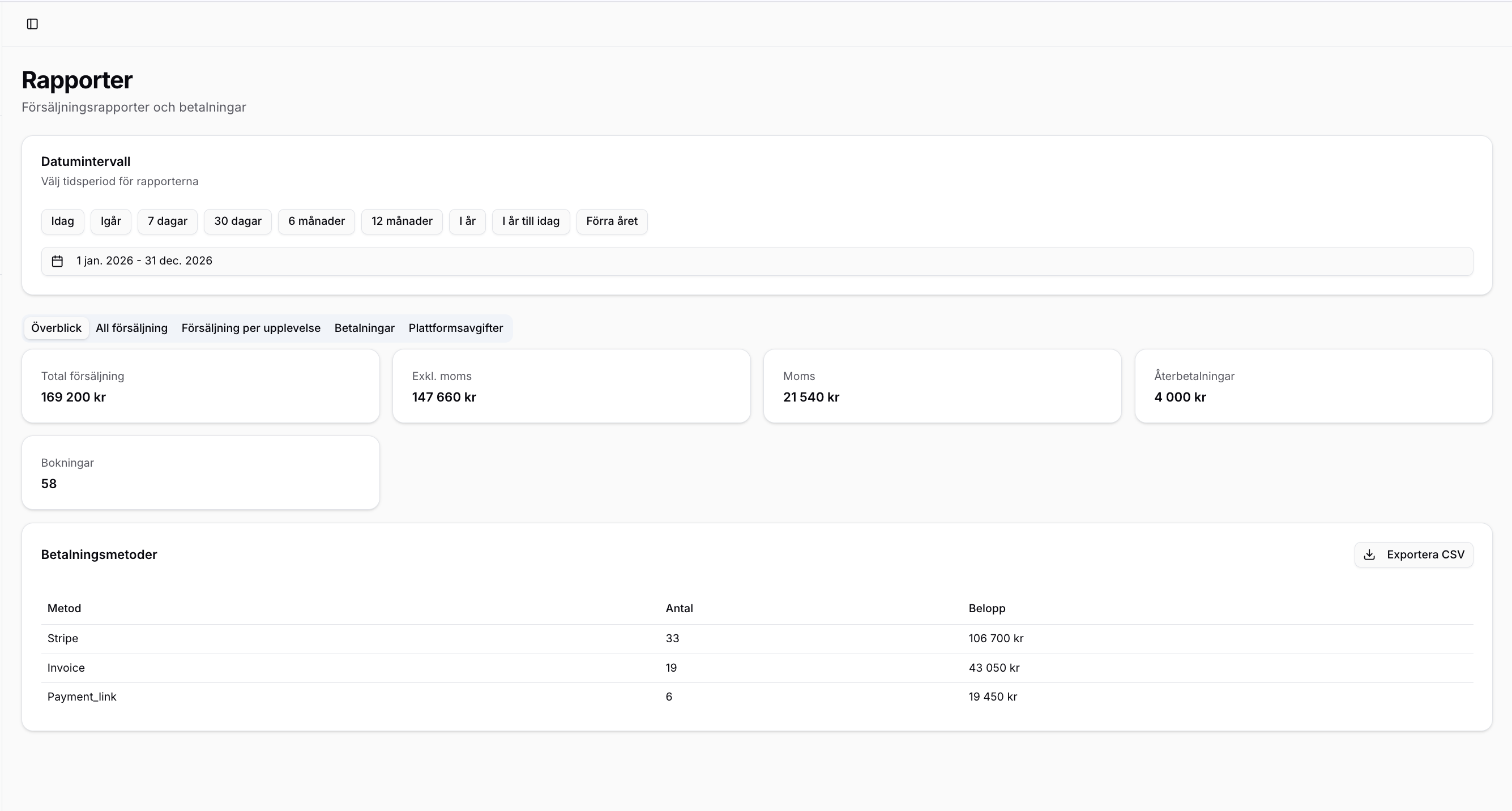 Ett komplett bokningssystem med alla verktyg för att driva din upplevelseverksamhet.